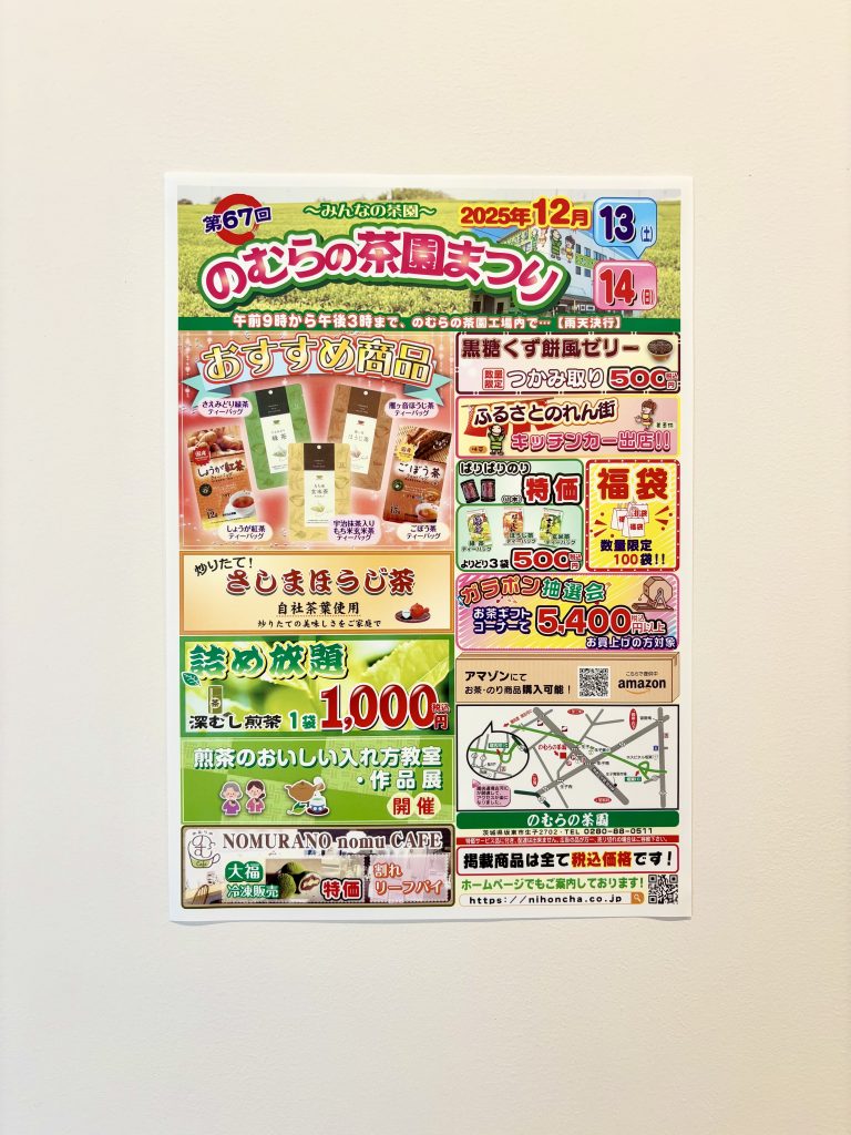 来月に開催される第67回のむらの茶園まつりのチラシが完成致しました✨