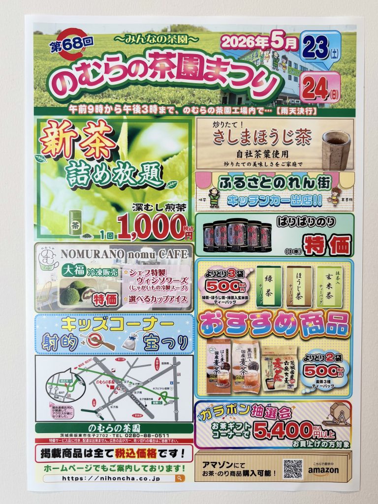 来月に開催される第68回のむらの茶園まつりのチラシが完成いたしました。
